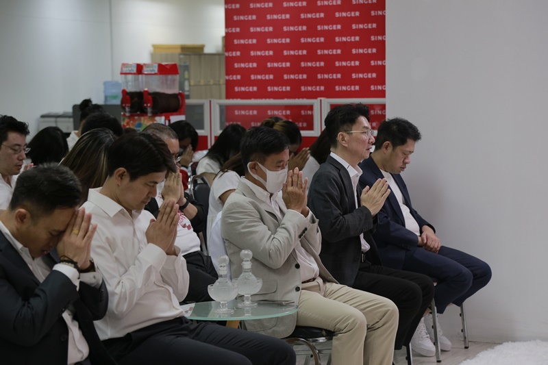 คุณอดิศักดิ์ สุขุมวิทยา ประธานกรรมการ บริษัท ซิงเกอร์ประเทศไทย จำกัด (มหาชน) เป็นประธานในพิธี ทำบุญบริษัทฯ และสักการะองค์พระครุฑพ่าห์ เพื่อความเป็นสิริมงคลแก่ผู้บริหารและพนักงานซิงเกอร์ เมื่อวันที่ 21 กรกฎาคม 2568 ณ สำนักงานใหญ่ บมจ.ซิงเกอร์ประเทศไทย ชั้น 17 อาคารโทรคมนาคมบางรัก กรุงเทพฯ